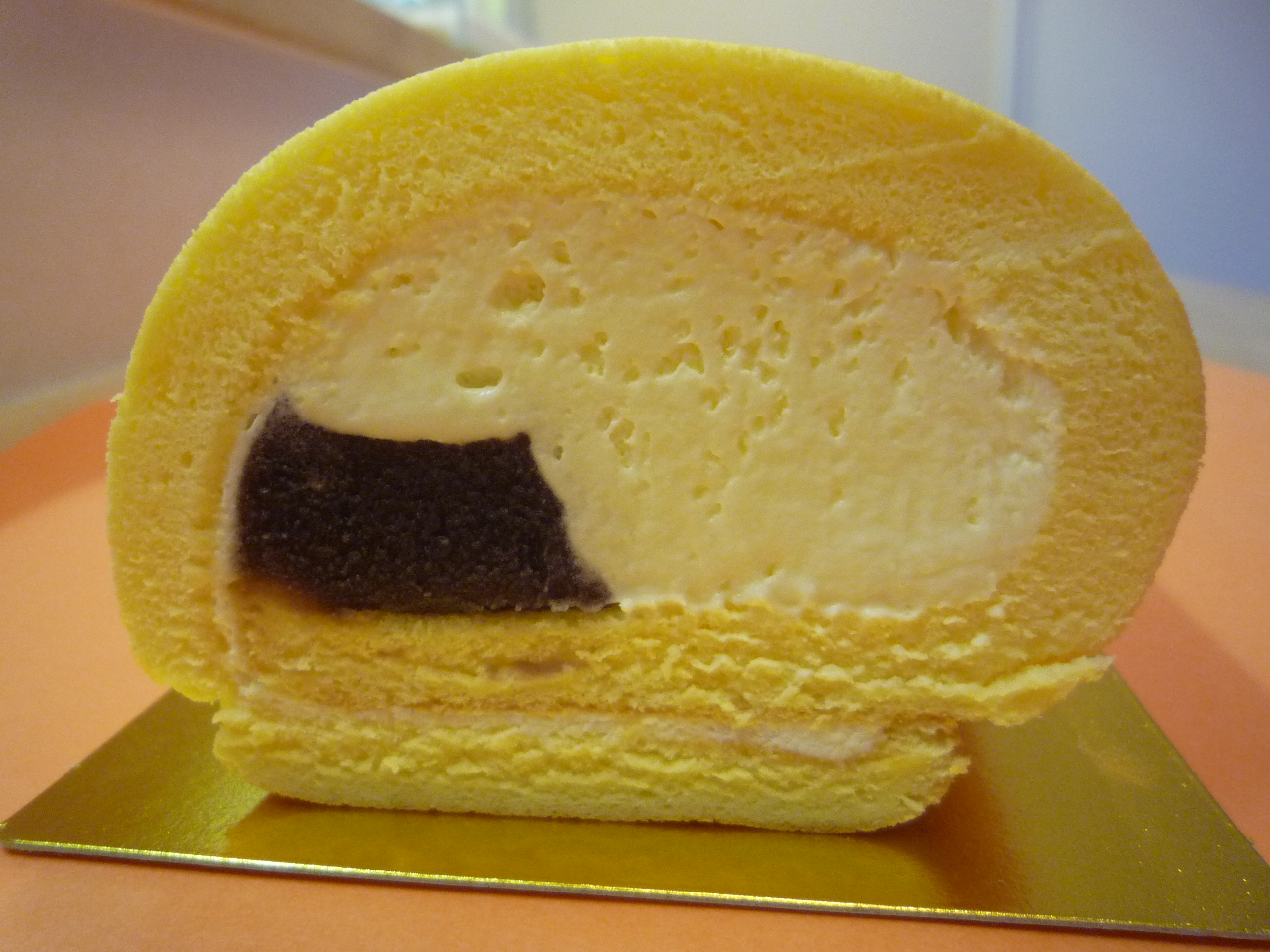 オーレリー自慢のクレーム・シャンティ (生クリーム)だけをたっぷり入れて、 チーズスフレ生地で巻きました。